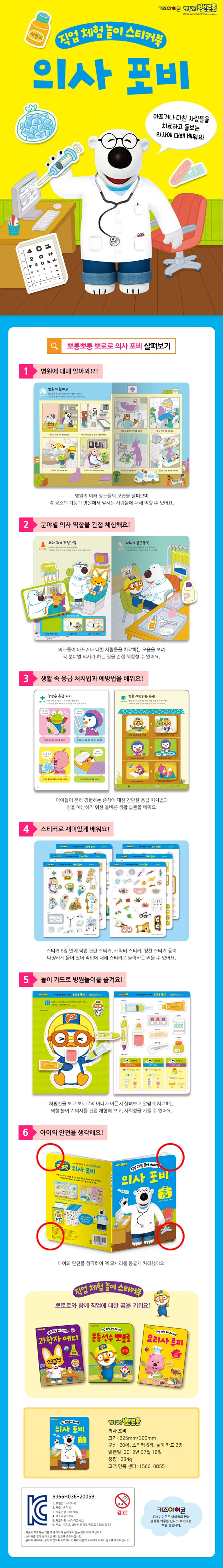 6 pages of stickers related to the occupation, Pororo characters, and word of praise
