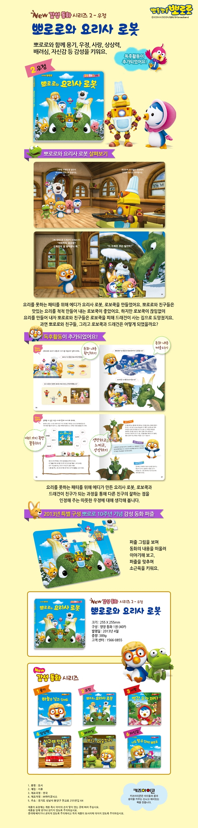 This book is dedicated to a specific life lesson. Readers will join Pororo and his friends on their adventure. Post-reading materials include clarifications of the story, highlights, and discussion questions relevant to the reader and the moral of each story.