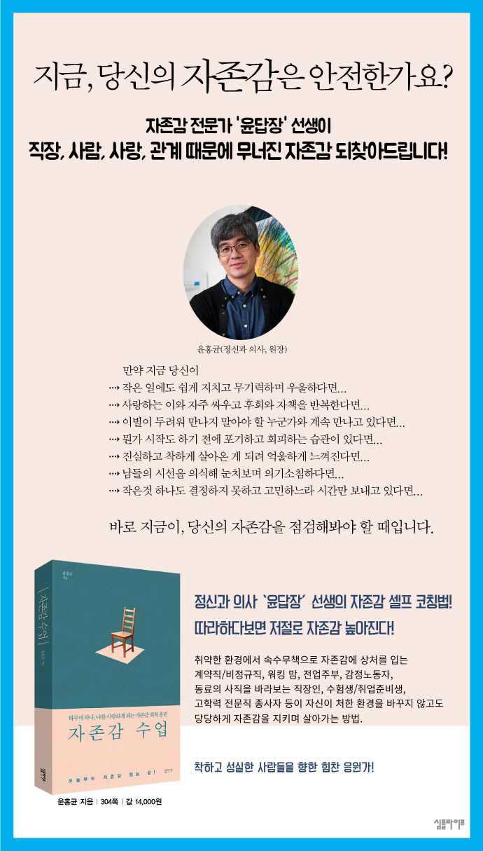 Psychiatrist, Dr. Answer Yoon’s Confidence-boosting Self-coaching Method. Self-confidence expert and psychiatric doctor, Yoon Hong Gyoon, compiled this book after 2 years of directly practicing these methods with patients. This book contains many practical tips and ways to increase self-confidence. Those who want higher self-esteem but don’t know where to start as well as those who experience inner conflict and discord due to low self-esteem will find this book helpful.